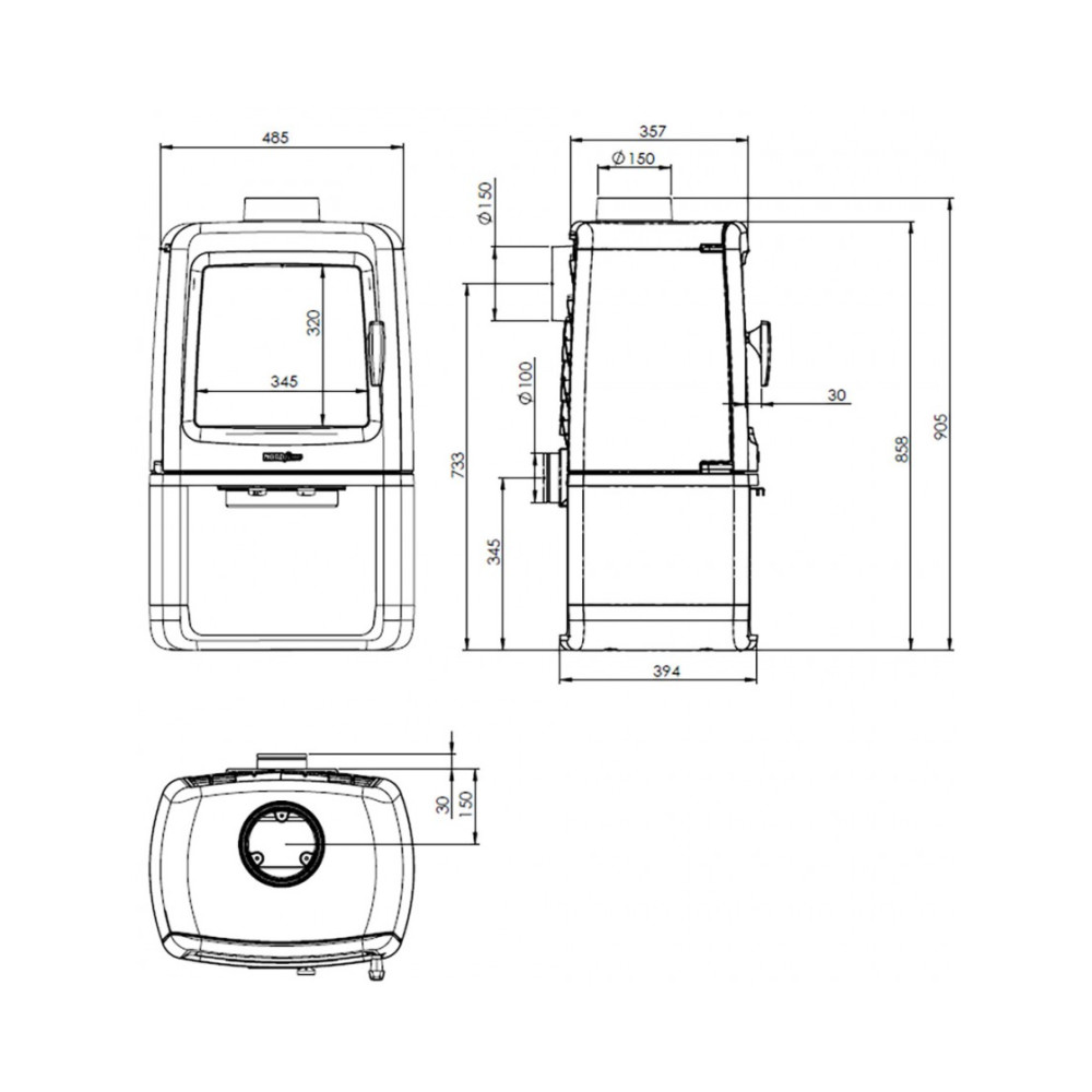 - Піч має досить компактні розміри, але за рахунок високого коефіцієнту корисної дії забезпечує максимальне використання енергії від згоряння палива, тому здатна ефективно обігрівати приміщення площею до 85 м².