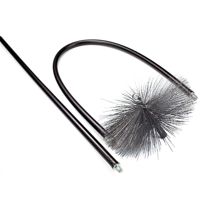 Щітка виготовлена з загартованого пружинного дроту діаметром 0,55м, що затиснутий між оцинкованими прутами діаметром 4 мм. Різьба М12 та кільце для кріплення троса або мотузки забезпечують універсальність та зручність використання. Ручний коловорот або т-подібна ручка додадуть зручності у користуванні набором. Довжину набору можна збільшити або зменшити до будь-якої величини, кратної 1м.