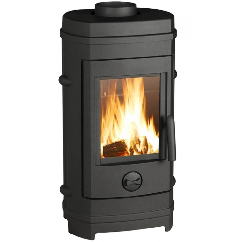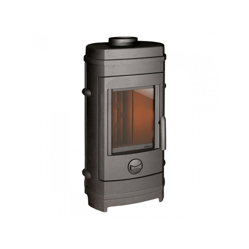 - Привлекательная вертикальная форма и антрацитовый цвет покрытия позволяют гармонично вписать печь в любой интерьер.
